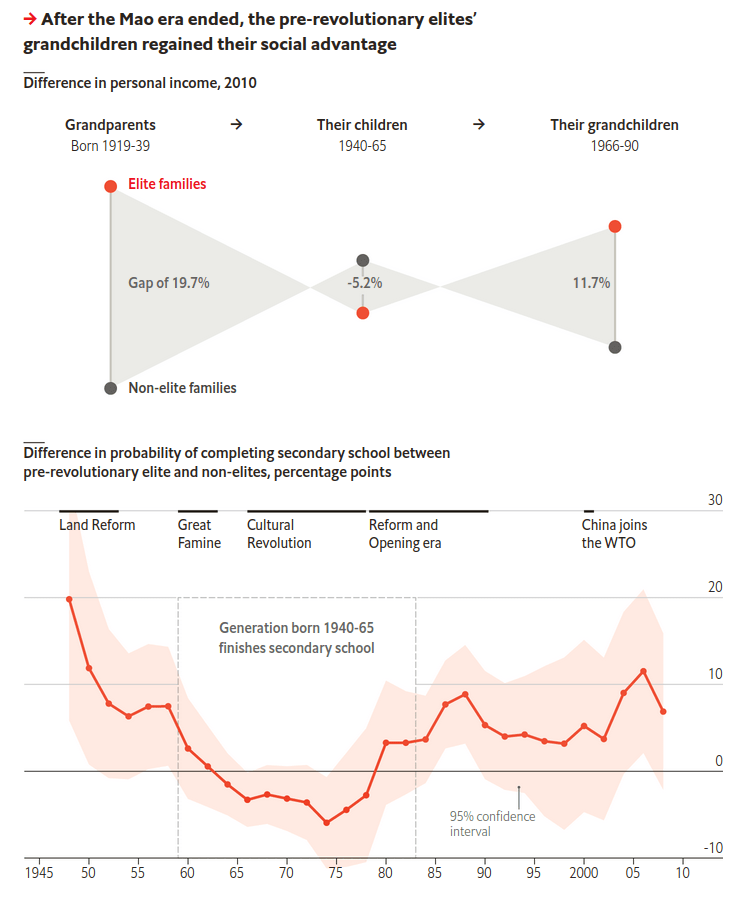 Source: The Economist, Jun 9th 2022, The grandchildren of China’s pre-revolutionary elite are unusually rich. Their original source was, “Persistence despite revolutions”, by A. Alesina, M. Seror, D. Yang, Y. You & W. Zeng, working paper, 2022